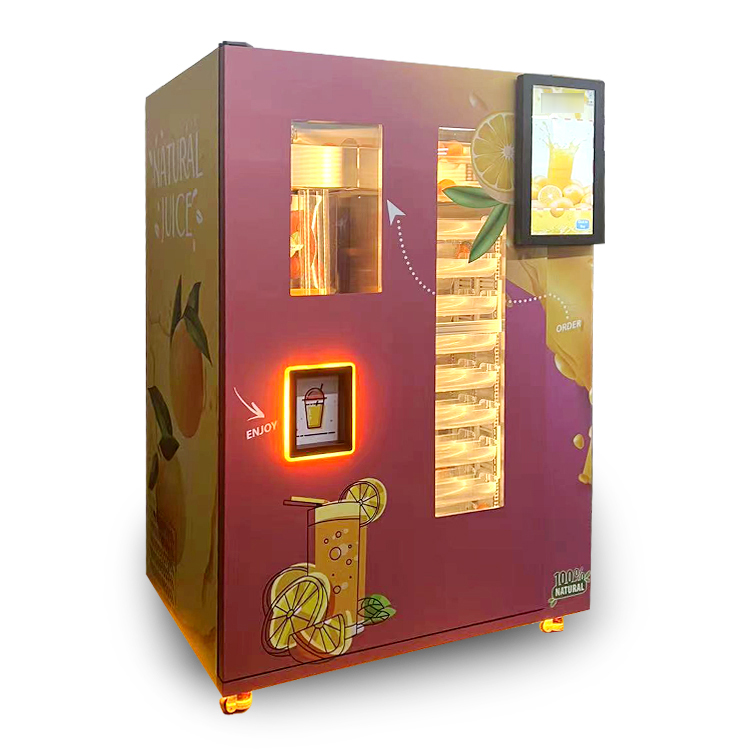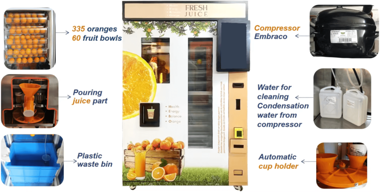 The Orange Juice Vending Machine offers a superior juice experience by automatically separating the pulp and peel, ensuring a fresher and better-tasting beverage.